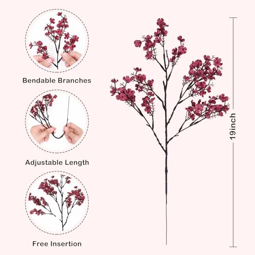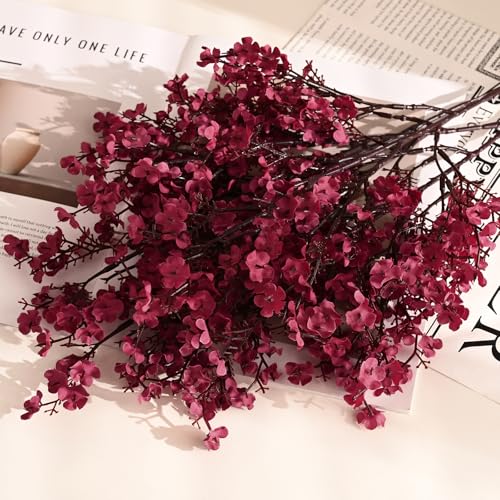 Waipfaru 6Pcs Fake Flowers Babys Breath Silk Artificial Flowers Gypsophila Bouquets Bulk Real Touch Fall Stems for Fall Thanksgiving Decor Autumn DIY Floral Arrangement Table Centerpieces, Wine Red