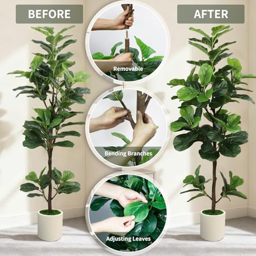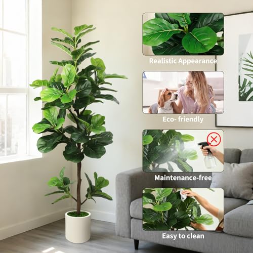 【Zero Maintenance Greenery】Enjoy year-round vibrant greenery without watering, pruning, or sunlight. Unlike live plants that require care, our fake fiddle leaf fig tree stays perfectly lush and fresh-looking with just occasional dusting. Ideal for busy lifestyles and plant enthusiasts alike.