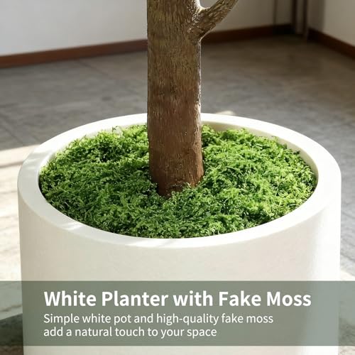 【White Planter with Fake Moss】Our ficus tree artificial comes with a simple white planter (7.1” × 7.1”) and high-quality faux moss to add a natural touch to your space. The weighted base ensures stability, and the white planter design blends perfectly with modern, rustic, and contemporary decor styles.