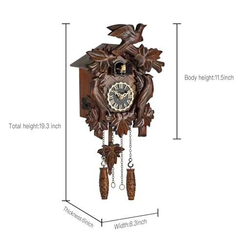 [Quality] Made of solid wood, this beautiful cuckoo clock measures approximately 8.3 x 6 x 11.5 inches without the length of the pendulum