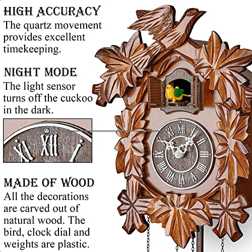 ⭐ NIGHT MODE: When you turn off the light, the clock stops chiming and the cuckoo bird will not disturb you in the night.