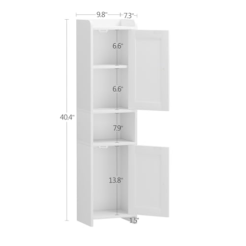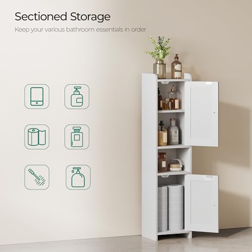 Bathroom Cabinet with 2 Doors, 7.3 x 9.8 x 40.4 Inches, Small Freestanding Storage Cabinet with Adjustable Shelf, Floor Cabinet for Small Spaces, Bathroom, Entrances, Kitchen, White