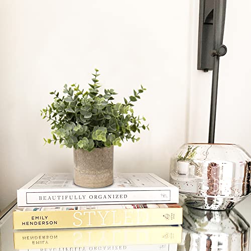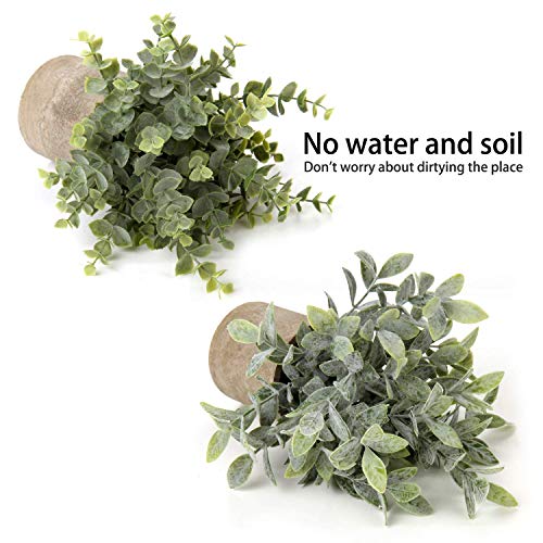 Briful Artificial Potted Plants Set of 2 Small Faux Plant Eucalyptus Mini Fake Plant Decor for Home Table Office Room Desk Bathroom Shelf Kitchen Rustic