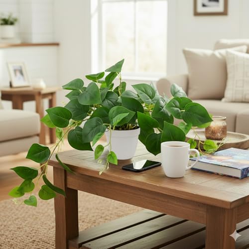 Fake Pothos Artificial Hanging Plants – You can use the faux plants as a potted desk plant in your workstation or a fake hanging plant in your outdoor space. Try using the artificial plant indoor plants as fake plants for bathroom and bedroom.