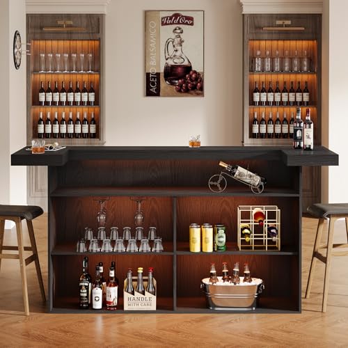 Tribesigns 4-Tier Bar Table, 70.9-Inch Large Wooden Home Bar Unit with Wine Glass Holder and Black Footrest, Pub Table with Storage Shelves for Dining Room, Living Room, Black