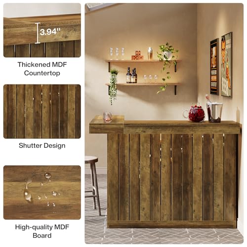 Tribesigns Bar Table, L Shaped Home Bar Unit for Home, 4-Tier Corner Liquor with Storage Shelves and Wine Glasses Holder, Industrial Wine Cabinet Reception Desk for Basement (1, Brown)