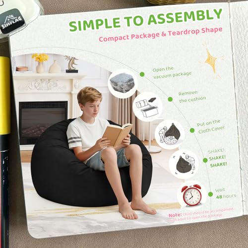 MEMORY FOAM FILLING: Giant bean bag chair is filled with high rebound memory foam to provide you with comfort and fluffy support. Unlike other crushing foams, our memory foam bean bag chair can bounce back perfectly after use. Note: The bean bag chair is a compression package and need 2-3 hours to fluff it up for maximum comfort.