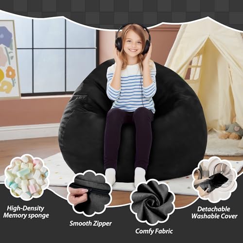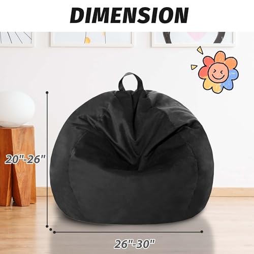 2FT Bean Bag Chair with Ultra Soft Velvet Cover Bean Bag Sofa with Memory Foam Bean Bag Chairs with Large Size Lazy Sofa for Dorm Office Living Room Bedroom Black 2′