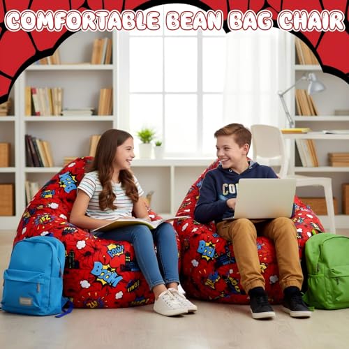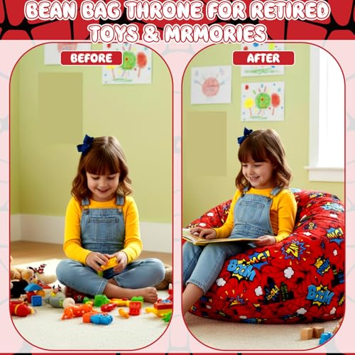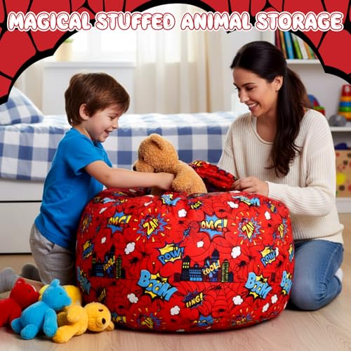 Boao Stuffed Animal Storage Bean Bag Chair Cover (No Filler) Washable Canvas Beanbag Chair Bean Bag Cover with Zipper for Organizing Plush Toys or Textile, Sack Beanbag (Cartoon Spider,27 Inches)