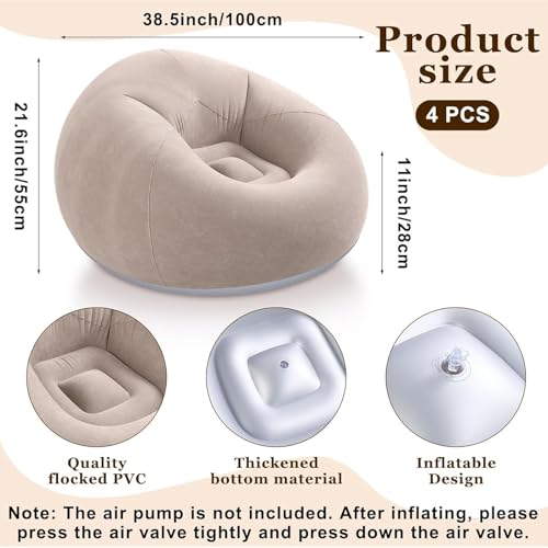 Versatile Uses: you will get 4 inflatable bean bag chairs in coffee color, the bottom is silver, which is different from the main body of the inflatable chair; These bean bag chairs are nice for leisure, napping, sleeping, reading, movie night, backyard family gatherings, or any kind of leisure activities