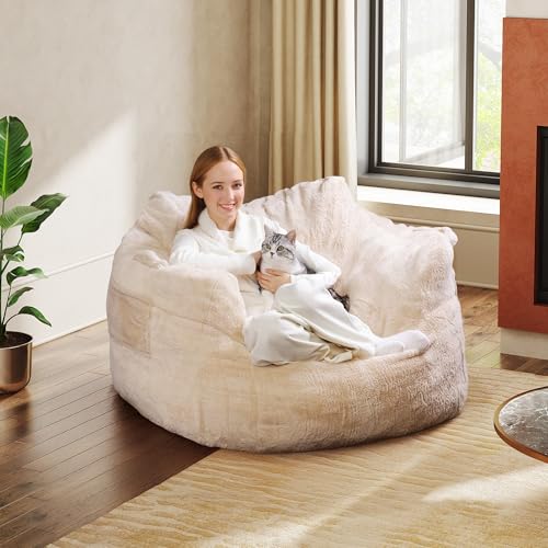 WLIVE 43” Giant Bean Bag Chair, Bean Bag Sofa with Armrests for Adults, Bean Bag Couch with High-Density Memory Foam for Livingroom, Bedroom, Beige