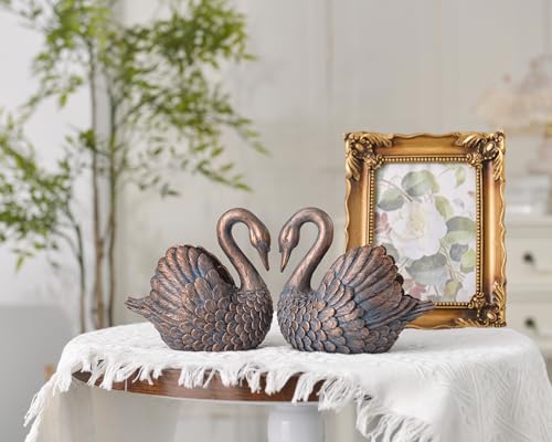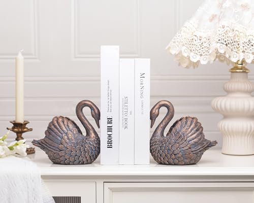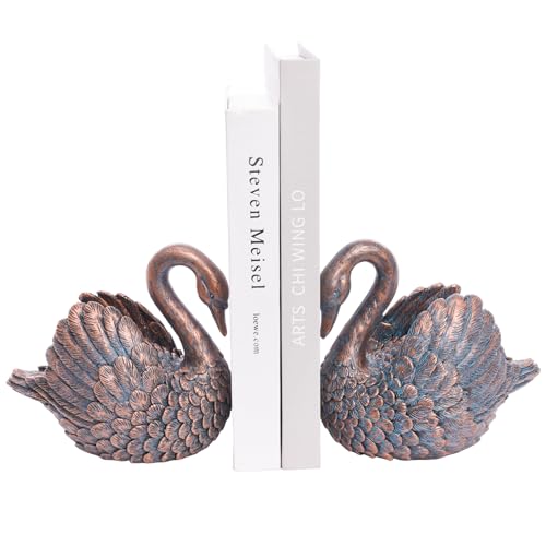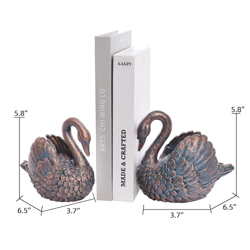Swan Decorative Bookends,Resin Book Ends for Shelves,Unique Bronze Book Holders,Heavy Duty Swan Decor for Home Office Desk Bookshelf,Set of 2,Gifts for Anniversary