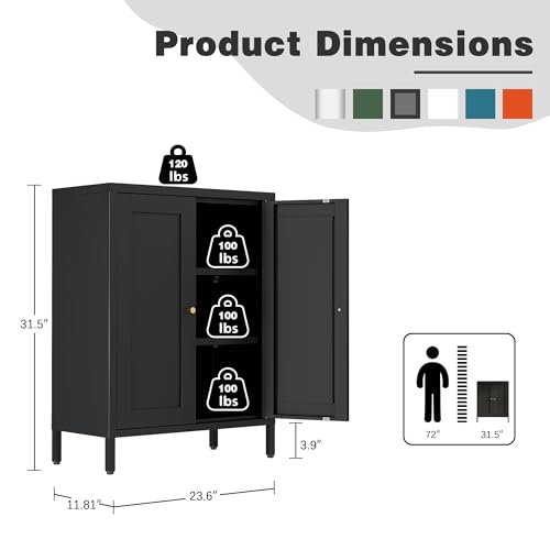 Be the first to review “Small Bathroom Storage Cabinet, Black Metal Locker Cabinet with 2 Doors and 2 Adjustable Shelves, Metal Floor Cabinets Sideboard for Home Office, Living Room, Hallway, Entryway”