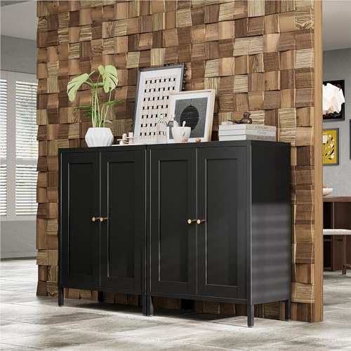 [Practical Design]The metal storage sideboard has 2 magnetic doors and 2 adjustable shelves,allowing you to organize both tall and short items and keep them away from dust; Modern simple design, look elegant and attractive in your home style.