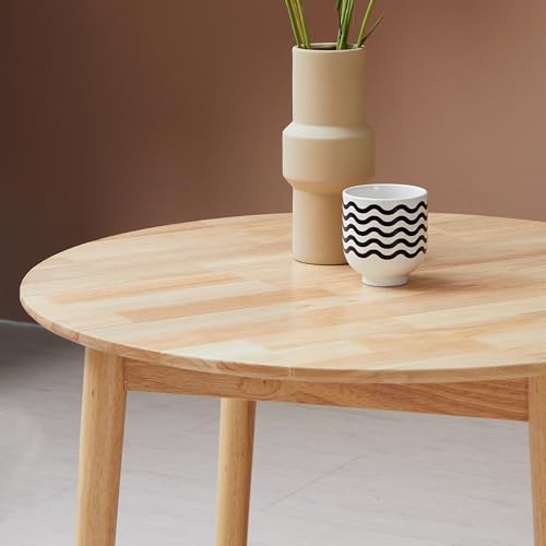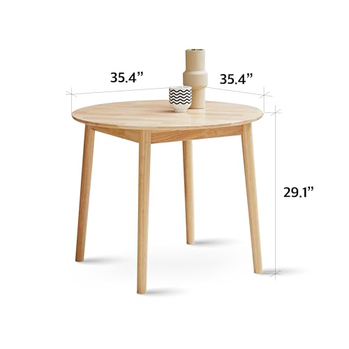 Livinia Aslan 35.4″ Round Wooden Dining Table/Mid Century Modern Malaysian Oak Kitchen Table (Natural-Oak)