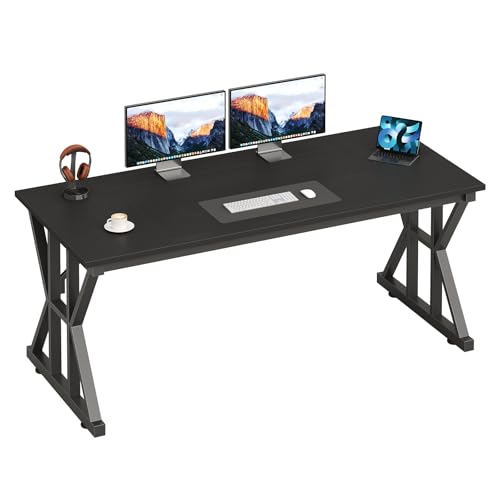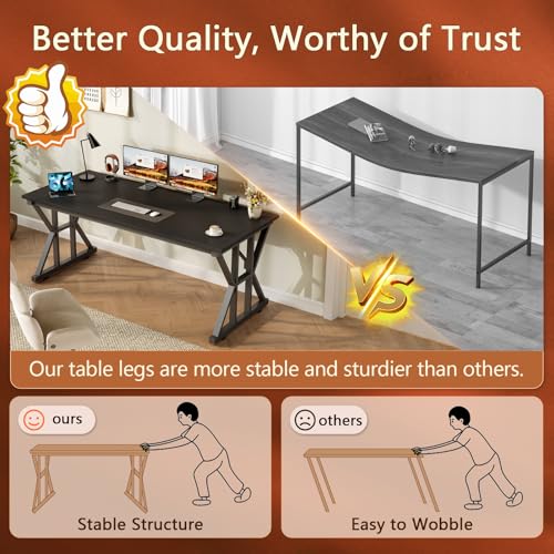 TVU Computer Desk, 55 inch Large Office Desk, Study Writing Table with Thicken Frame, Gaming Desk, Modern Simple Desk for Home Office, Black