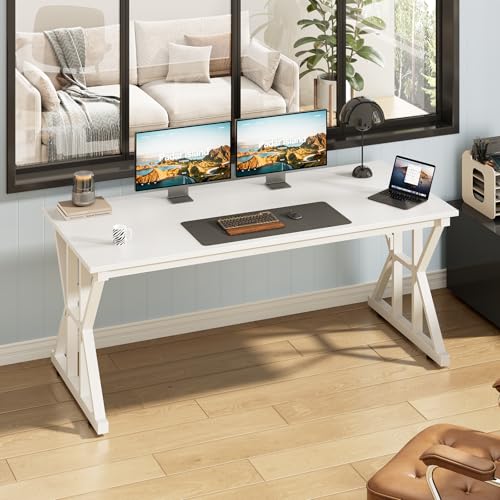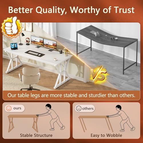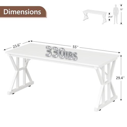 TVU Computer Desk, 55 inch Large Office Desk, Study Writing Table with Thicken Frame, Gaming Desk, Modern Simple Desk for Home Office, White