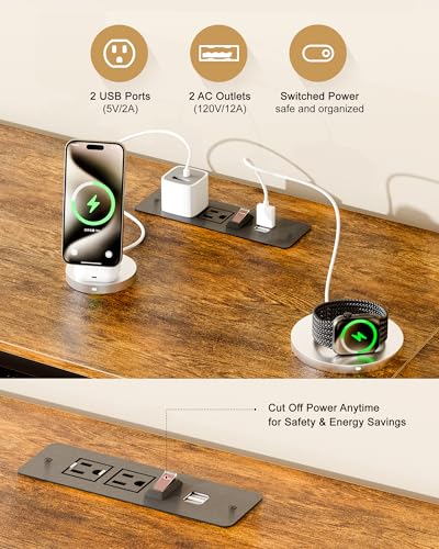 [Home Theater Ambiance]: This TV stand comes with a switched power outlet featuring 2 of 3-prong AC sockets and 2 USB ports, allowing you to power your TV, consoles, and smart devices with ease. The included 2-meter LED strip offers 7 vibrant colors and 3 dynamic speed modes, all adjustable by remote, creating the perfect atmosphere for gaming, movies, or parties.