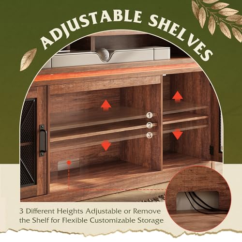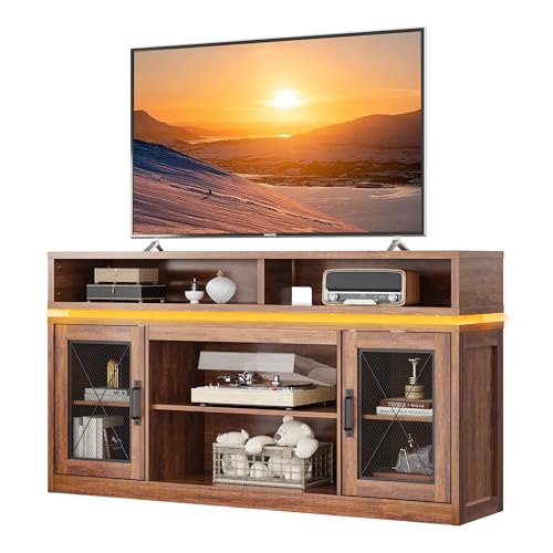 WLIVE Farmhouse TV Stand for TVs Up to 65 Inches, Tall Entertainment Center with Storage Cabinets & LED Lights, Media Console for Living Room, Bedroom, Home Theater, Rustic Brown