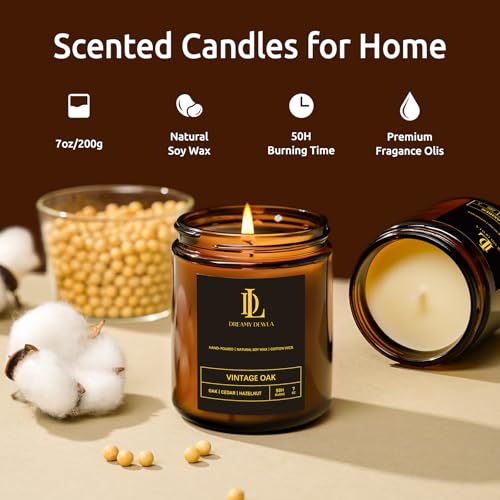 Advanced Fragrance: Each candle uses a professional fragrance formula: the smoky feeling of oak, the warm sweet fragrance of amber, the milky fragrance of sandalwood, and the refreshing herbal fragrance of eucalyptus. The fragrance is long-lasting and layered, and it will instantly enhance the style of the space when it is lit.