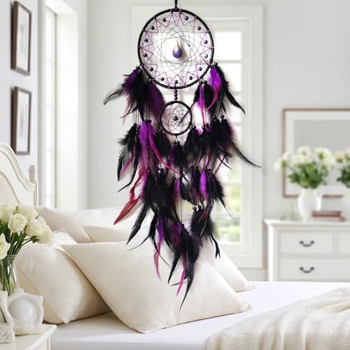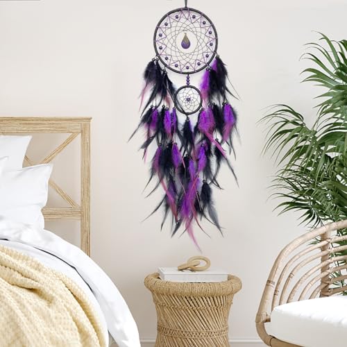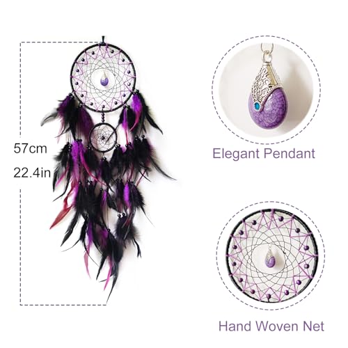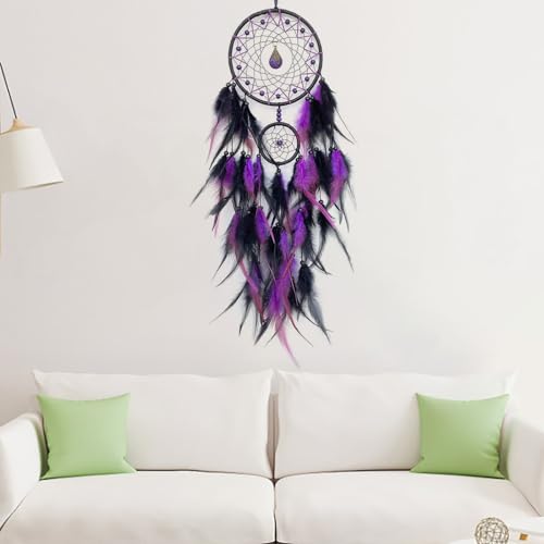Black and Purple Dream Catcher Wall Decor Feather Dream Catchers with Pendant Handmade Dreamcatcher Wall Hanging Ornament for Bedroom Living Room Home Decor
