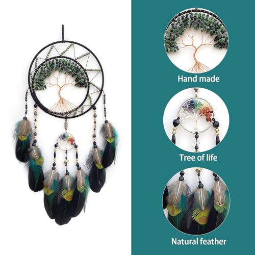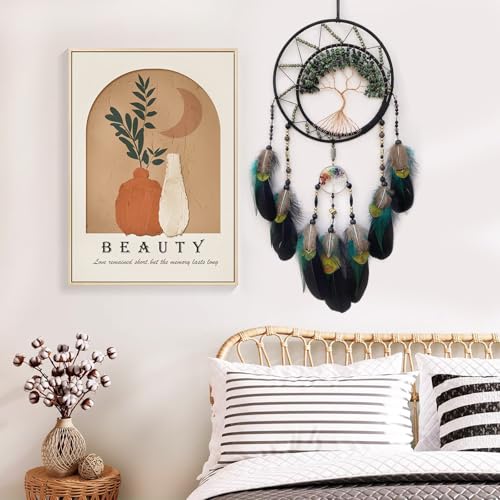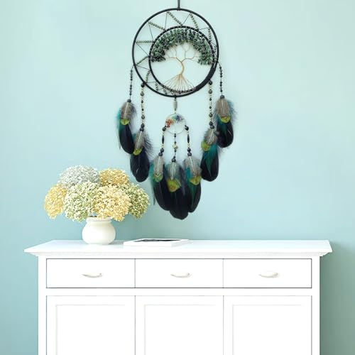 Black Large Dream Catcher Wall Decor Crystal Tree of Life Dream Catchers Handmade Feather Dreamcatcher Wall Hanging Ornament for Bedroom Living Room Home Decor