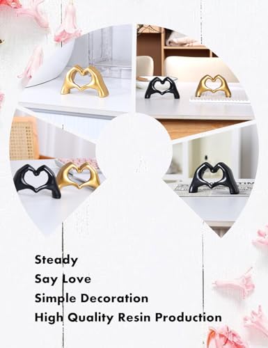 Small Heart Hands Sculpture-Gold Shelf Decor for Living Room, Love Finger Statue Modern Aesthetic Unique Accent Decor Bedroom Knick Knacks -Gifts for Wedding Christmas Birthday(Gold)