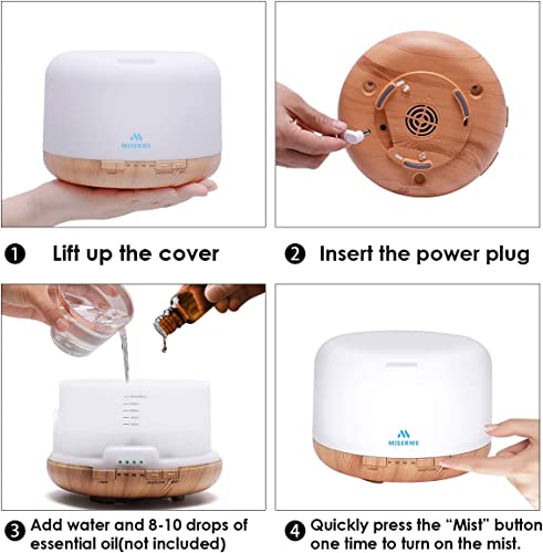 Ultra-Large Capacity: Diffuser have Large 500 ml water capacity that can continue use up to 10 hours each time.4 time setting modes: 60 min / 120 min / 180 min /ON stable o