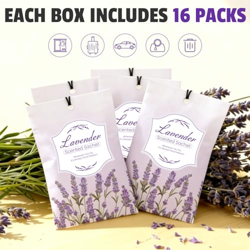 16 Packs Lavender Scented Sachets for Drawers and Closets,Long Lasting Sachet Bag Room Car Odor Deodorizer Fresh Scent Home Fragrance