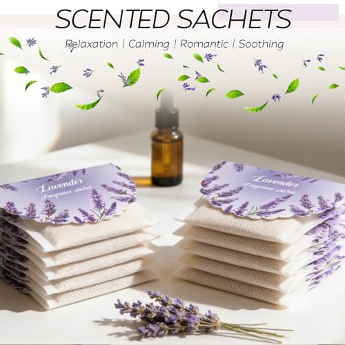 【Premium Materials & Long-Lasting Lavender Fragrance】 The lavender sachets for drawers and closets crafted from high-quality natural ingredients, safe and reliable, calming and soothing, it steadily releases a pleasant aroma for 4-8 weeks, filling your home with the pure and refreshing scent of lavender.