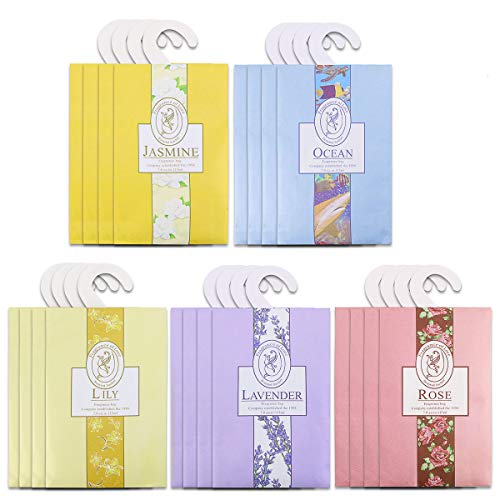 20 Pack Air Freshner Deodorizer Flower Scented Sachets Bags for Drawer and Closet with Hanger