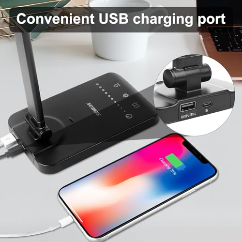 USB Charging: this lamp can be powered by laptop or power bank without relying on socket! The desk light come with a Built in 5V2A USB output port on the base, you can charge your mobile phones, tablets, kindle readers, and other electronic devices when you need.
