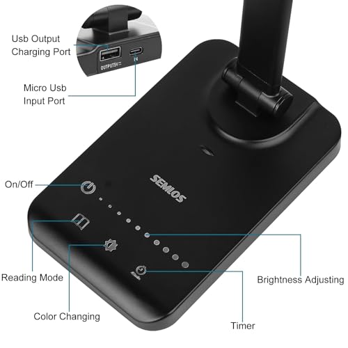 Semlos LED Desk Lamp, Eye-Caring Table Lamps with 5 Brightness Levels & 5 Lighting Modes, 45 Min Auto Timer, Touch Control and Memory Function, Dimmable Home Office Study Reading Desk Light,Black
