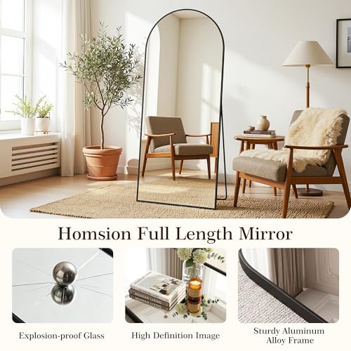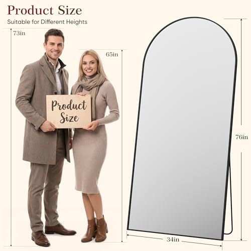 【Premium Full Length Mirror】 Homsion 76″ x 34″ mirror offers a full head-to-toe view for outfit checks, dressing and grooming. The modern arched top adds elegant style to any space. Built with a durable aluminum alloy frame that is lightweight yet strong, easy to move, and refined in appearance. Rust-proof, moisture-resistant, anti-oxidation and fade-resistant for long-term use, more durable than wood or MDF frames.