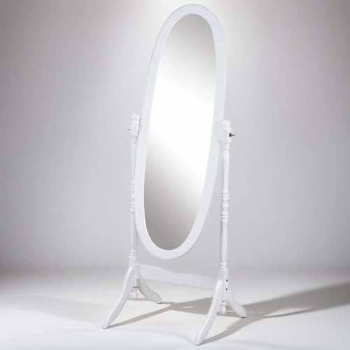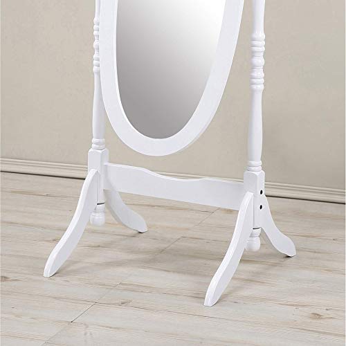 GTU Furniture Swivel Adjustable Full-Length Oval Wood Cheval Floor Mirror, in White/Black/Cherry/Oak/Silver/Gold Finish (White)