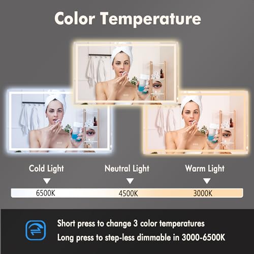 Anti-Fog & Memory Function: This lighted mirrors is equipped with a defog function to keep it clear at all times, and its memory function remembers your last settings, offering convenience and efficiency.