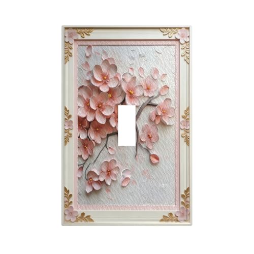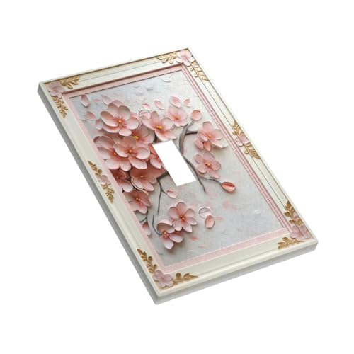 Decorative Art Light Switch Covers Blush Cherry Blossom Single Toggle Wall Plate Decorative Switchcover Electrical Switchplate for Home Decor