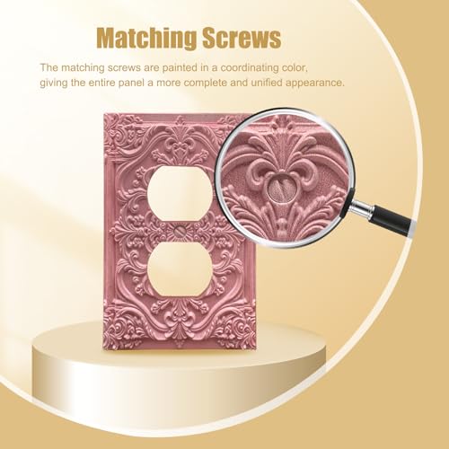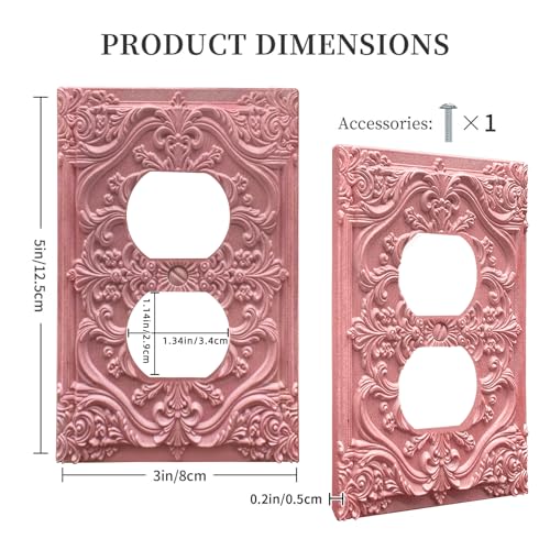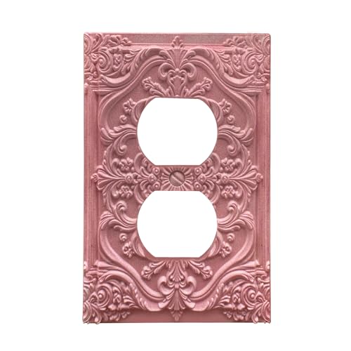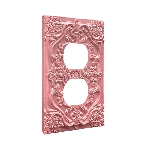 Decorative Outlet Covers Pink Flower Elegant 3D Floral Embossed 1 Gang Duplex Light Switch Cover Plate Unique Wall Plate Electrical Switch Plate Covers for Bedroom Home Decor