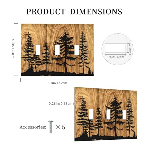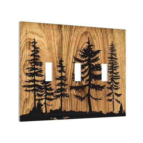Farmhouse Brown Pine Tree Wood Grain Triple Toggle Light Switch Plates Outlet Covers Rustic Country Decorative 3 Gang Wall Plate Switchplate for Bathroom Home Decor Accessories