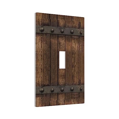 Standard Size: Farmhouse Rustic Barn Door wood Single Toggle 1 Gang 5 x 3 inch, covers any deplex outlet of same configuration