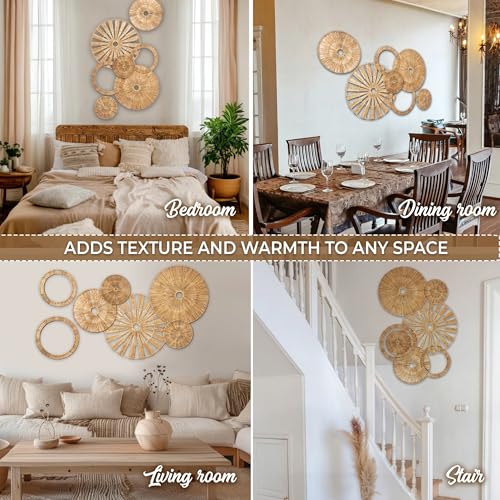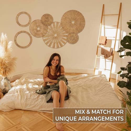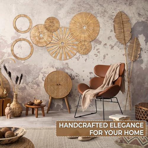 Xavia Handicrafts Set of 7 Boho Wicker Rattan Plate Basket For Décor Hanging Wall | Large Woven Farmhouse Rustic Bohemian Art Baket Hangings For Decorative Home, Bedroom, Living Room, Kitchen, Bathroom